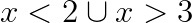A questo punto possiamo combinare la soluzione del numeratore e del denominatore in un unico grafico. Sulla prima riga mettiamo un’unica linea continua (corrispondente al risultato “sempre”), sulla seconda riga mettiamo invece linea continua prima di 2 e dopo il 3, il resto va tratteggiato.